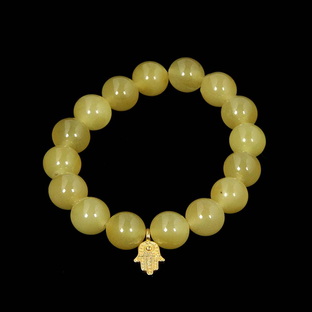 Bracelet - Amber with Hamsa Drop in Gold Wash