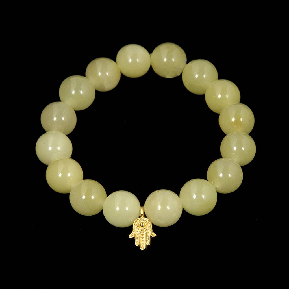 Bracelet - Amber with Hamsa Drop in Gold Wash