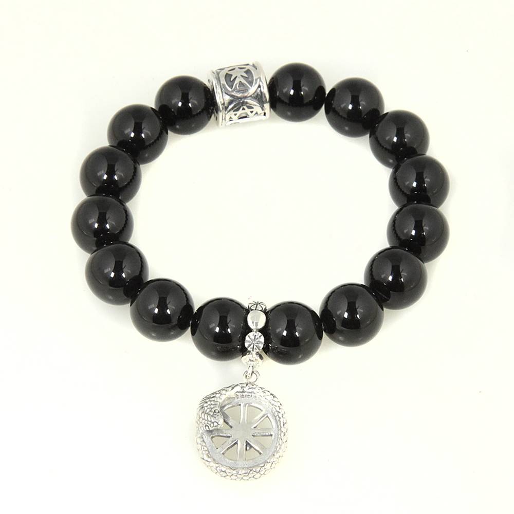 Onyx Bracelet with Kundalini Motif and Pagan Symbol