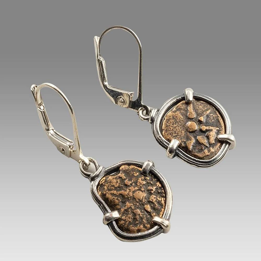 Ancient Biblical Widows Mites Coins set in Silver Earrings