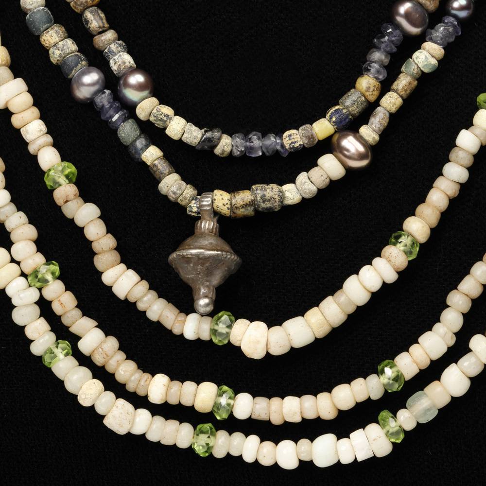 PEARL, EXCAVATED BEADS AND SILVER T-clasp