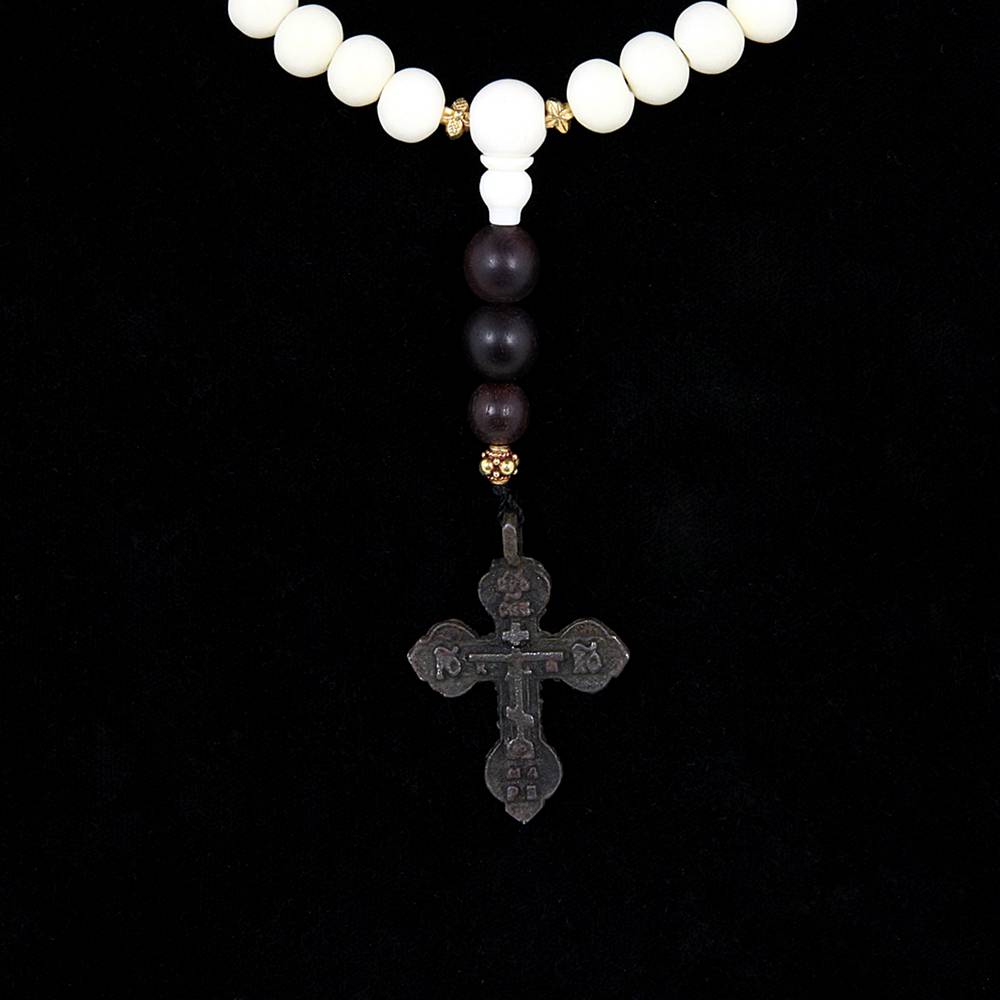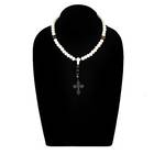 Bone Bead Rosary with Tiger Eye and Cross Drop