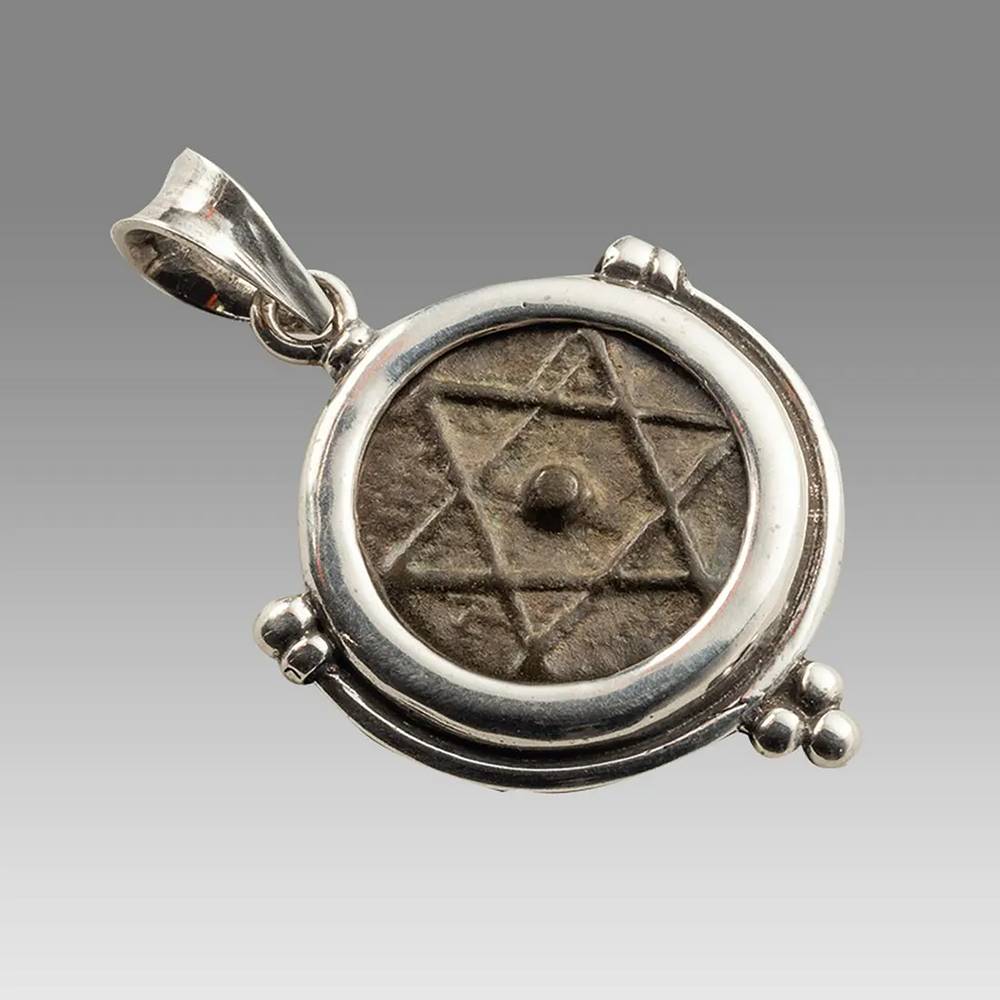 Bronze Coin Pendant Featuring Six-Pointed Star