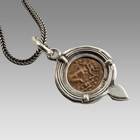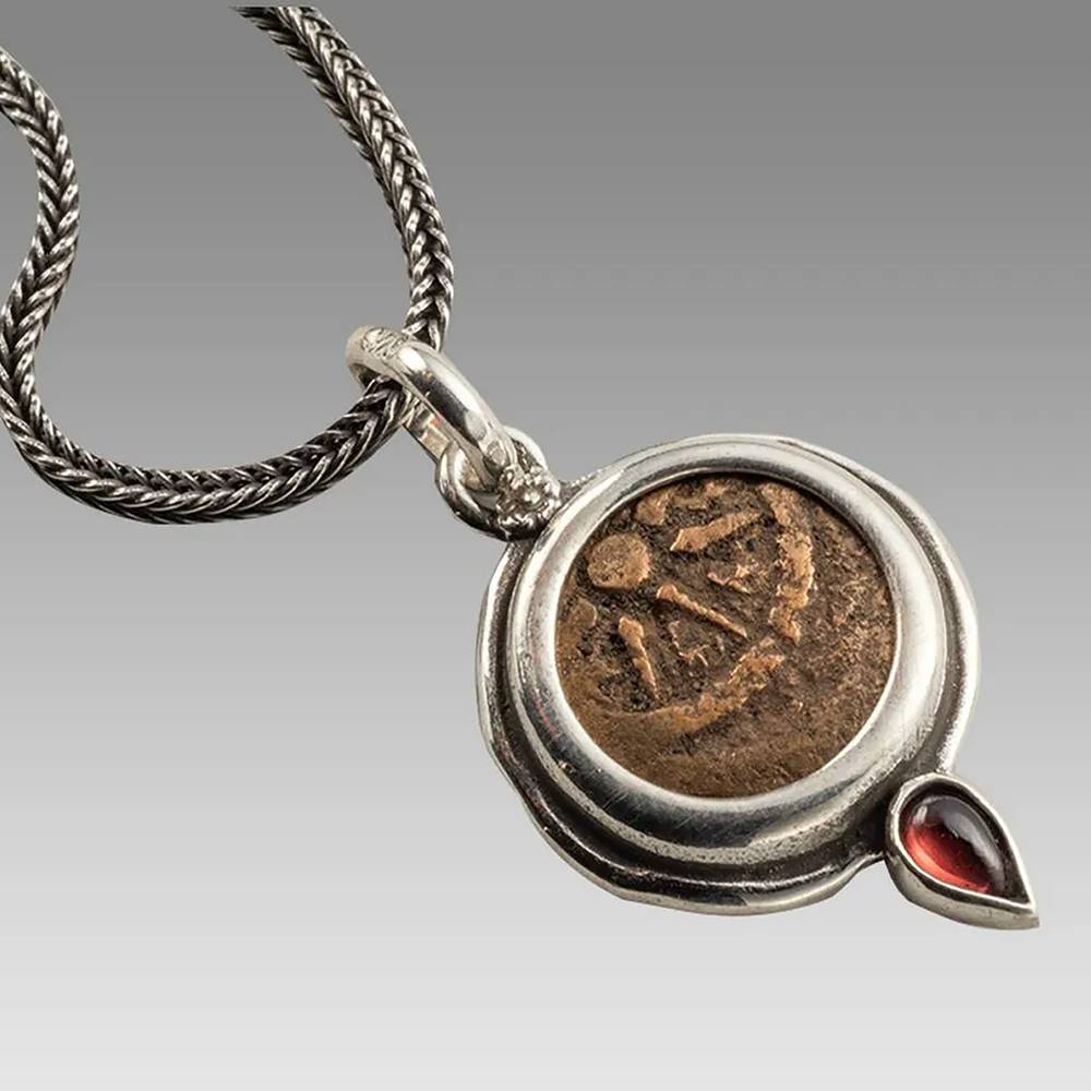 Ancient Biblical Widows Mite Bronze Coin Pendant with Ruby