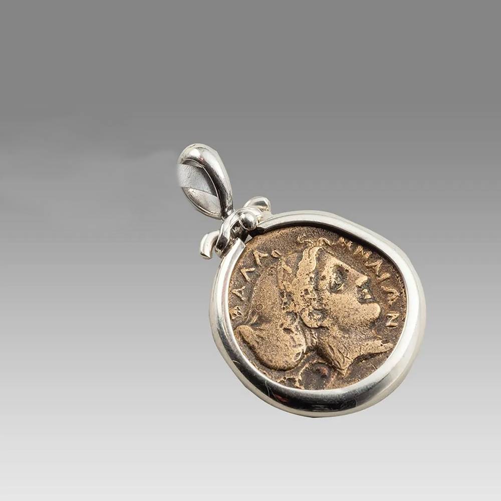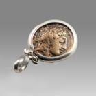 Ancient Bronze Coin Pendant Featuring Ares God of War and Nymph