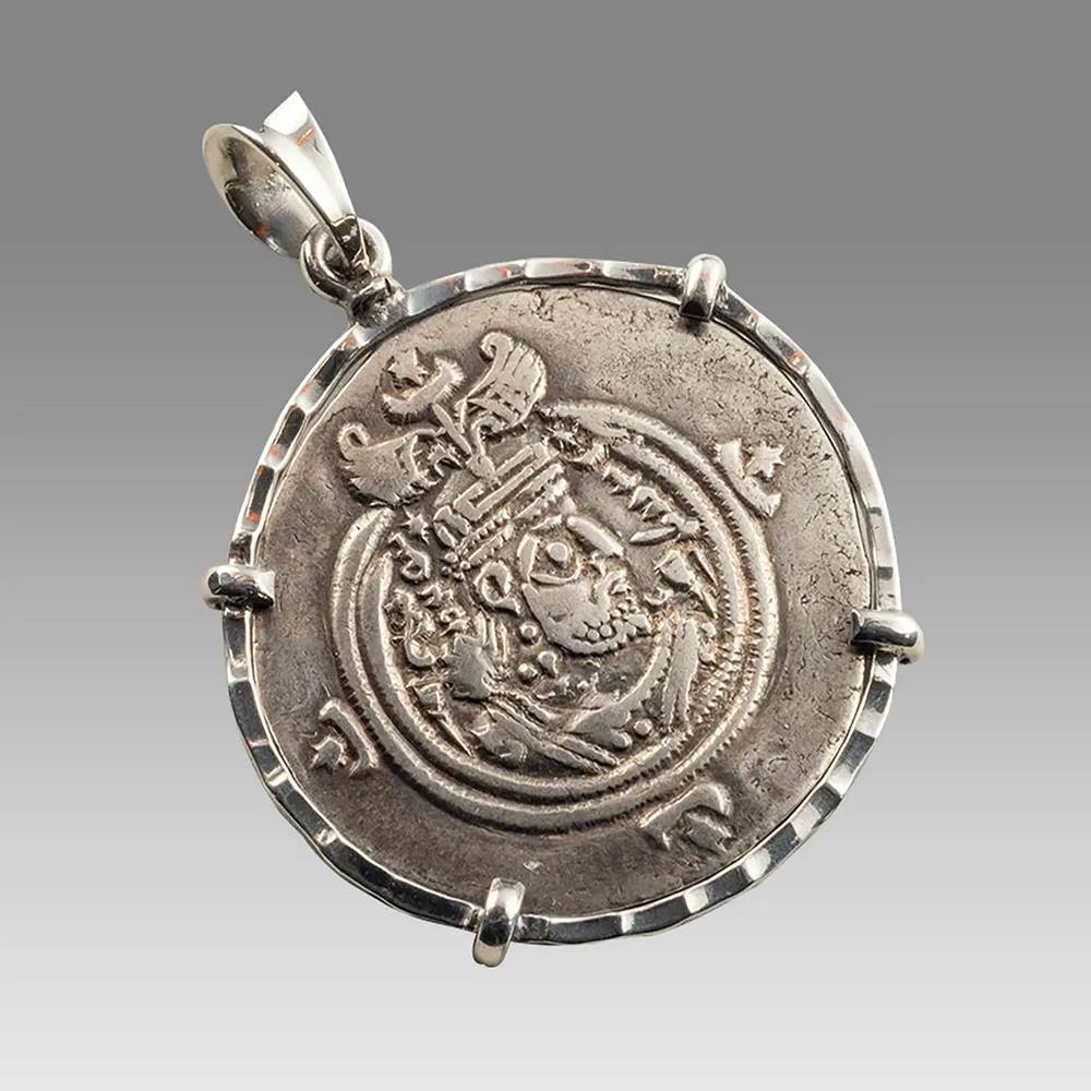 Ancient Sasanian Empire Silver Coin Pendant Featuring Khosrow II