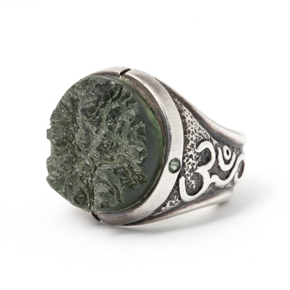 STERLING SILVER WITH MOLDAVITE AND SAPPHIRE