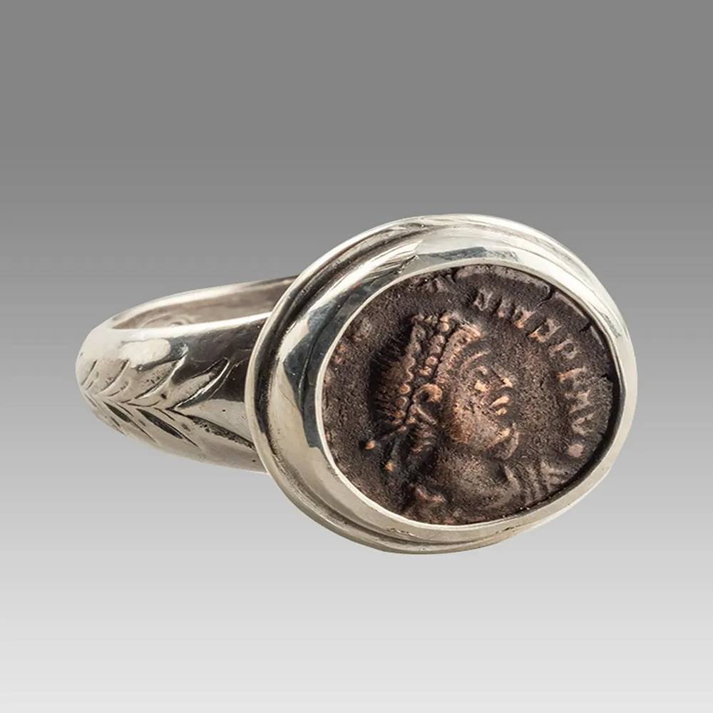 Ancient Bronze coin ring featuring the Emperor Constantine (size 6.5)