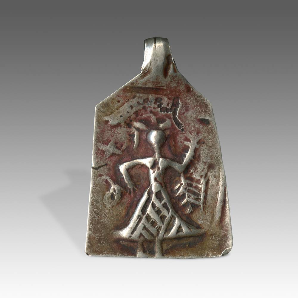 Plaque Amulet Depicting Devi with Tikka Remnants
