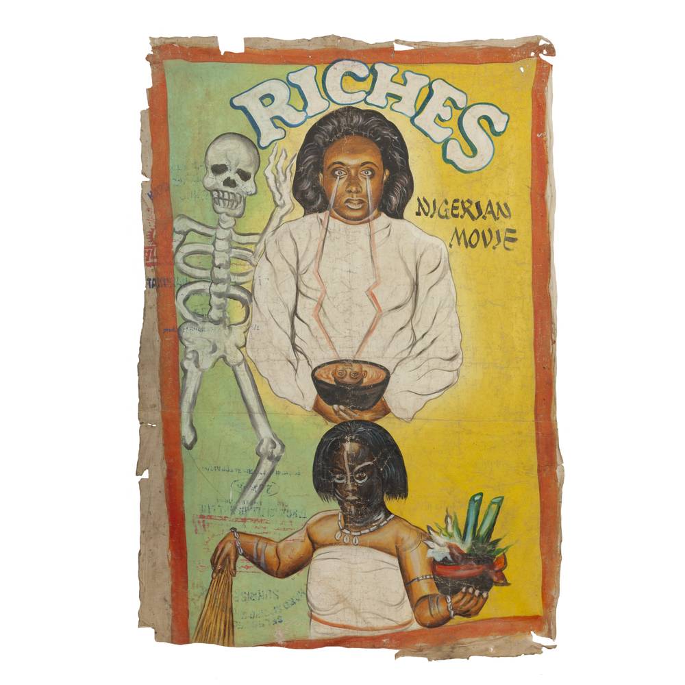 During the late 1980s, a cottage industry developed in Ghana, West Africa, called "mobile cinema." Entrepreneurs travelled from village to village with a TV, VCR and a portable gas powered generator and showed movies. The need to attract customers gave birth to what is now recognized as a distinctive, compelling collectible — the Ghanaian movie poster. They almost always present a lurid, colorful patchwork of images intended to attract, engage and entice the viewer. Though sometimes grotesque, melodramatic or downright ludicrous, they are unfailingly memorable, indeed unforgettable.