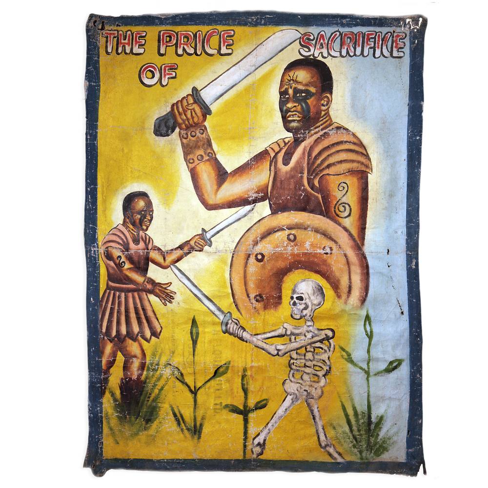 During the late 1980s, a cottage industry developed in Ghana, West Africa, called "mobile cinema." Entrepreneurs travelled from village to village with a TV, VCR and a portable gas powered generator and showed movies. The need to attract customers gave birth to what is now recognized as a distinctive, compelling collectible — the Ghanaian movie poster. They almost always present a lurid, colorful patchwork of images intended to attract, engage and entice the viewer. Though sometimes grotesque, melodramatic or downright ludicrous, they are unfailingly memorable, indeed unforgettable.