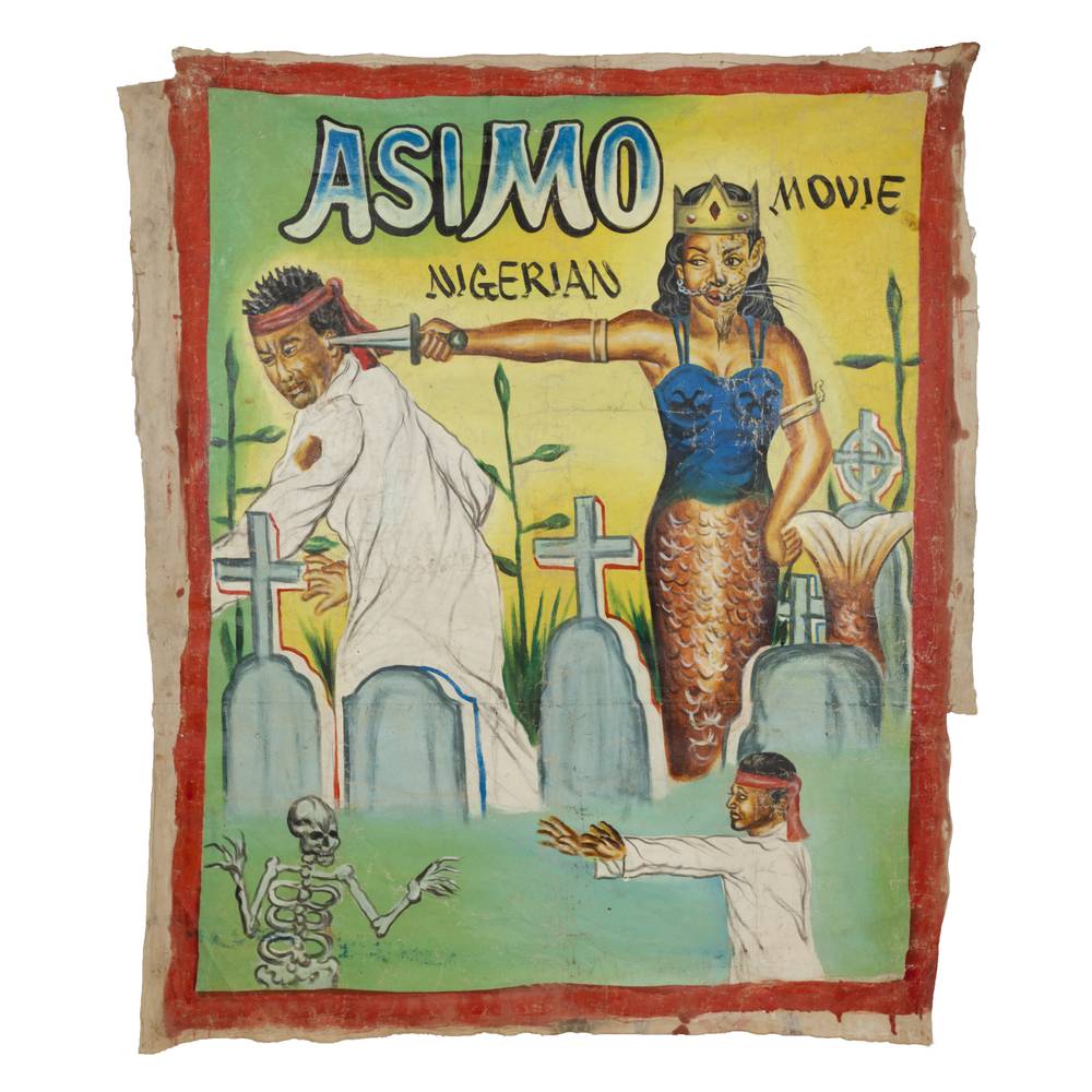 During the late 1980s, a cottage industry developed in Ghana, West Africa, called "mobile cinema." Entrepreneurs travelled from village to village with a TV, VCR and a portable gas powered generator and showed movies. The need to attract customers gave birth to what is now recognized as a distinctive, compelling collectible — the Ghanaian movie poster. They almost always present a lurid, colorful patchwork of images intended to attract, engage and entice the viewer. Though sometimes grotesque, melodramatic or downright ludicrous, they are unfailingly memorable, indeed unforgettable.
