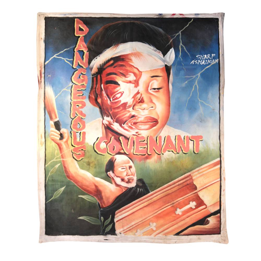 During the late 1980s, a cottage industry developed in Ghana, West Africa, called "mobile cinema." Entrepreneurs travelled from village to village with a TV, VCR and a portable gas powered generator and showed movies. The need to attract customers gave birth to what is now recognized as a distinctive, compelling collectible — the Ghanaian movie poster. They almost always present a lurid, colorful patchwork of images intended to attract, engage and entice the viewer. Though sometimes grotesque, melodramatic or downright ludicrous, they are unfailingly memorable, indeed unforgettable.