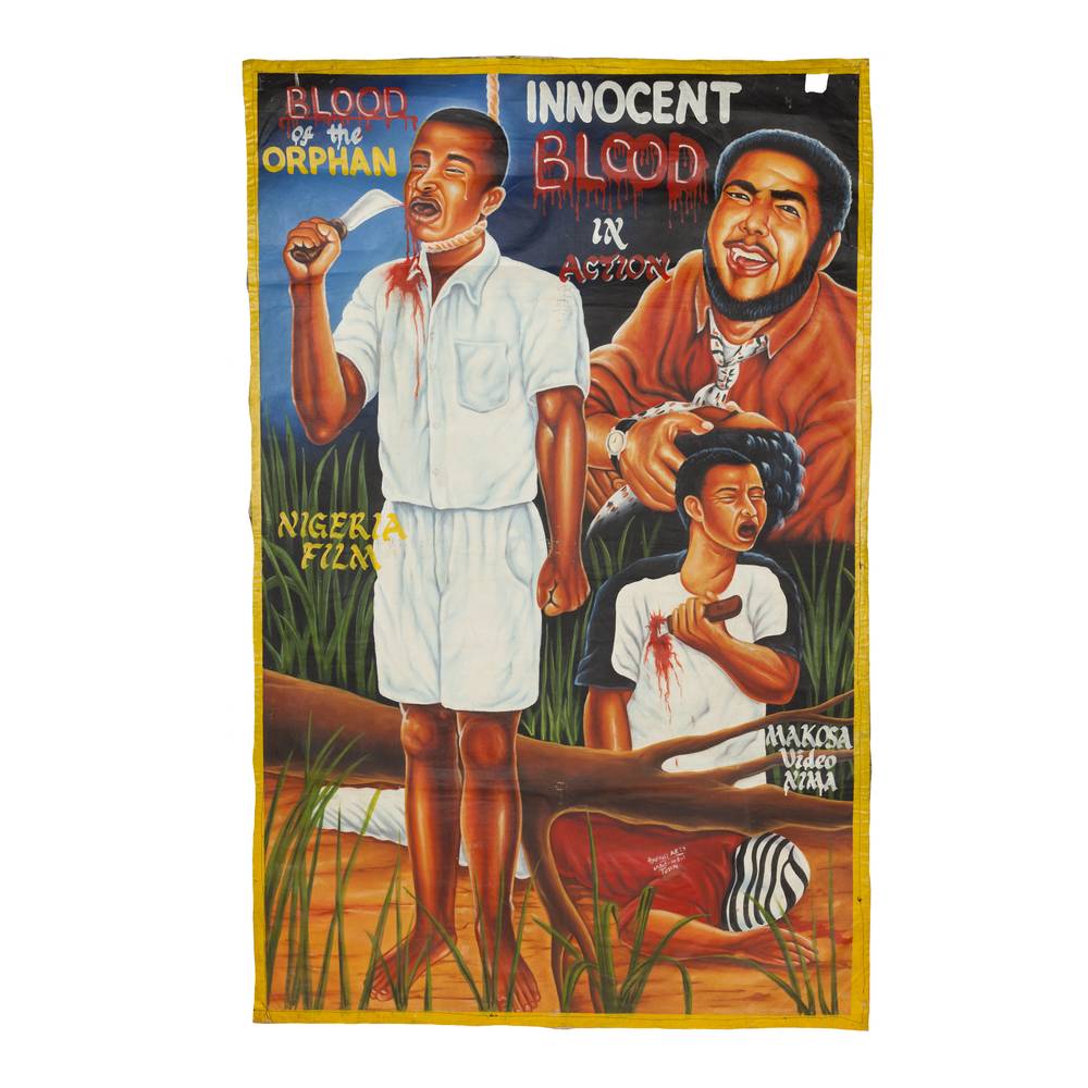 During the late 1980s, a cottage industry developed in Ghana, West Africa, called "mobile cinema." Entrepreneurs travelled from village to village with a TV, VCR and a portable gas powered generator and showed movies. The need to attract customers gave birth to what is now recognized as a distinctive, compelling collectible — the Ghanaian movie poster. They almost always present a lurid, colorful patchwork of images intended to attract, engage and entice the viewer. Though sometimes grotesque, melodramatic or downright ludicrous, they are unfailingly memorable, indeed unforgettable.