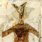 Paint chips and mixed media on paper