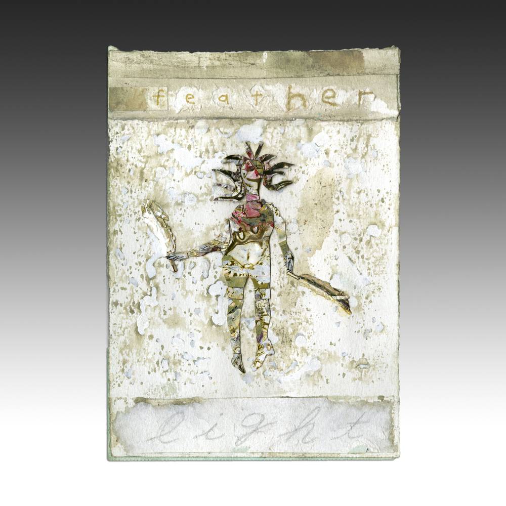 Paint chips and mixed media on paper