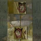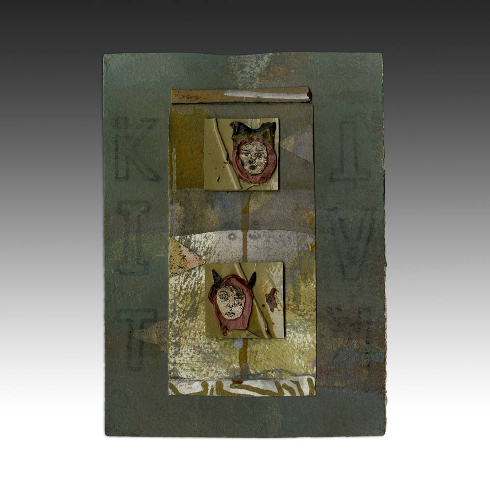Paint chips and mixed media on paper