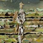 Paint chips and mixed media on paper
