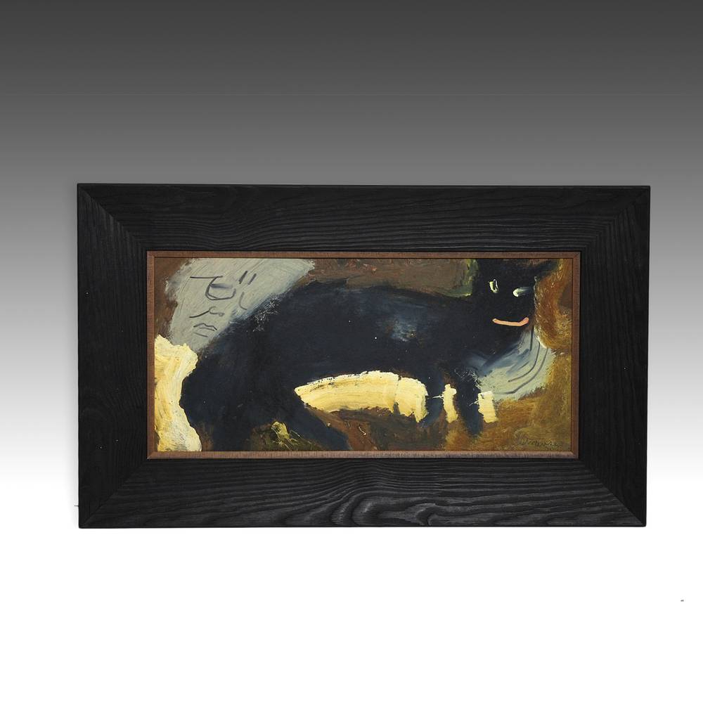 OLD MAN YOUNG CAT - SIGNED AND DATED LOWER RIGHT 75 - UNFRAMED - NUMBERED # 42 - DEPICTING "JASPER" THE CAT WITH STRAUSER LOOKING ON , 12" X 24"