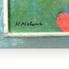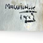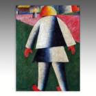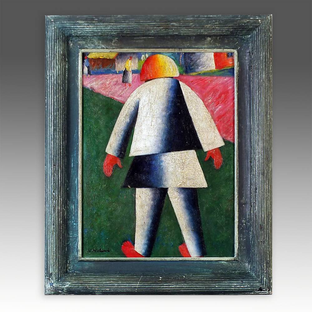 Figurative Abstract Painting, "Abstract Figure Before Buildings"