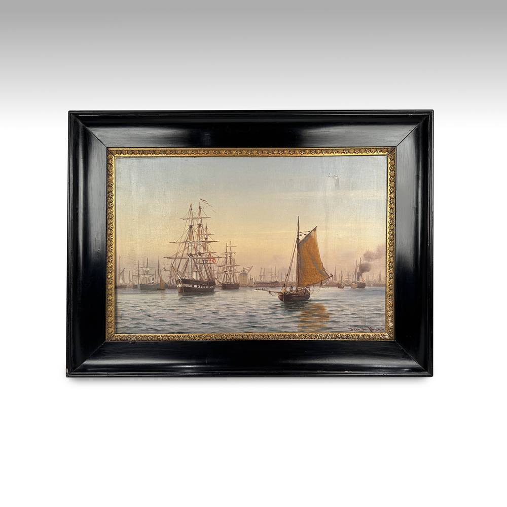 MARINE PAINTING, COPENHAGEN HARBOR, FRAMED