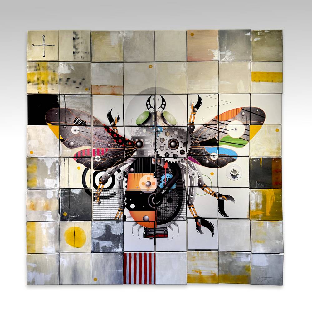 Hand-drawn digital on fine art canvases with oil and mixed media