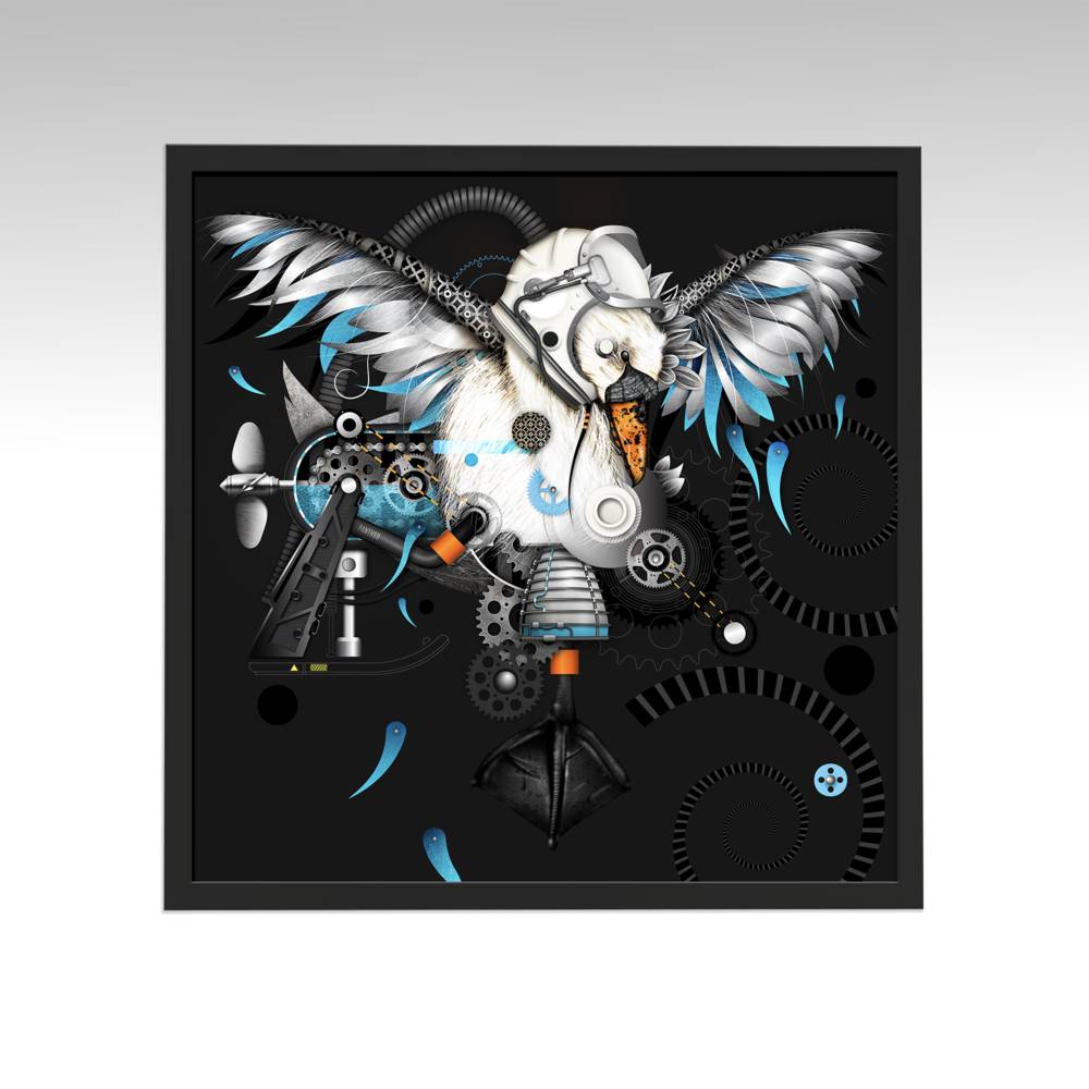 Hand-drawn digital/fine art print on metal; Framed