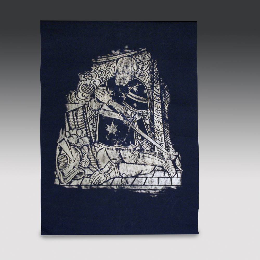 Brass rubbings are reproductions of engraved commemorative plaques, created by placing paper over the plate and rubbing with crayon or chalk. These rubbings were created by Jean Farrell in the 1960s and feature Belgian memorial stones dating from the 14th and 15th centuries. They went on to many private collections as well as museums.