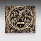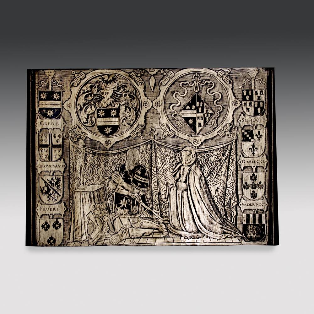 Brass rubbings are reproductions of engraved commemorative plaques, created by placing paper over the plate and rubbing with crayon or chalk. These rubbings were created by Jean Farrell in the 1960s and feature Belgian memorial stones dating from the 14th and 15th centuries. They went on to many private collections as well as museums.