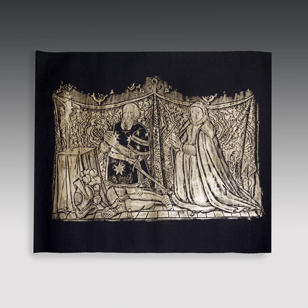 Brass rubbings are reproductions of engraved commemorative plaques, created by placing paper over the plate and rubbing with crayon or chalk. These rubbings were created by Jean Farrell in the 1960s and feature Belgian memorial stones dating from the 14th and 15th centuries. They went on to many private collections as well as museums.