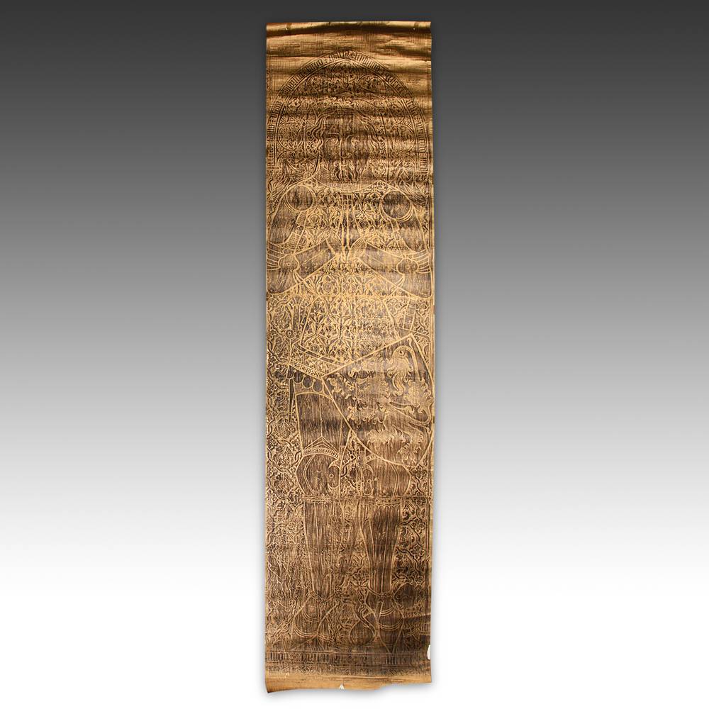Brass rubbings are reproductions of engraved commemorative plaques, created by placing paper over the plate and rubbing with crayon or chalk. These rubbings were created by Jean Farrell in the 1960s and feature Belgian memorial stones dating from the 14th and 15th centuries. They went on to many private collections as well as museums.