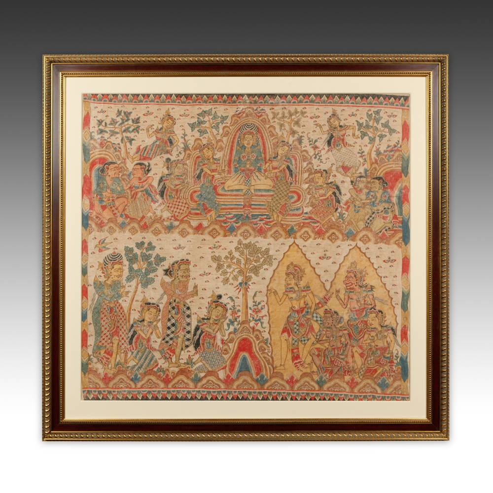 Tabing or Story Cloth Depicting Scenes From the Arjuna Wiwaha, Framed
