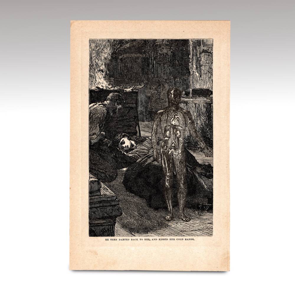 Collaged Etching; "He Then Darted Back to Her and Kissed Her Cold Hands"