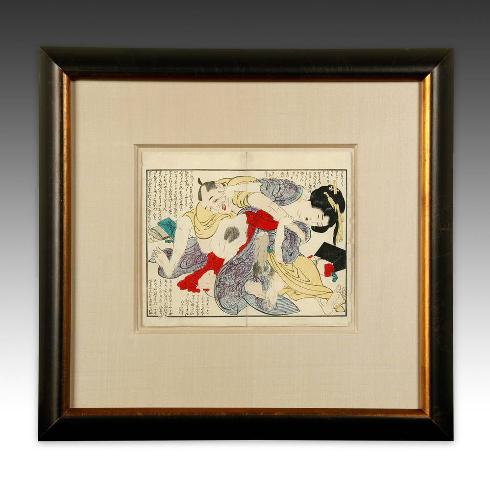Shunga Woodblock Print, Framed