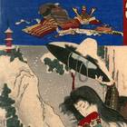 Following the Genpei War in the 12th century, Minamoto no Yoshitsune (1159-1189), one of the most famous samurai warriors in Japanese history, had a falling out with his half brother and new shogun, Yoritomo. This print illustrates Yoshitsune with his beloved mistress Lady Shizuka and loyal retainer Benkei in the mountains of Yoshino where they face Yoritomo's assassins.