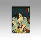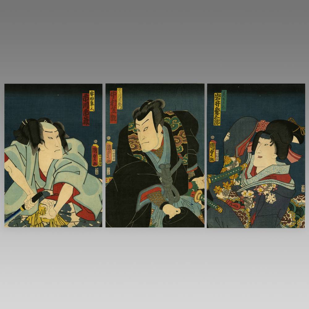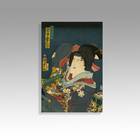 During his time, Utagawa Kunisada (1786-1865) was by the far the most well known and accomplished ukiyo-e artist, exceeding even his contemporaries Hiroshige, Hokusai and Kuniyoshi. Departing from the classical forms of ukiyo-e, his style was considered decadent but nevertheless a trendsetter and in tune to the tastes of the public. Keeping with the Utagawa school traditions, most of Kunisada's works portray kabuki actors and scenes from dramatic plays.