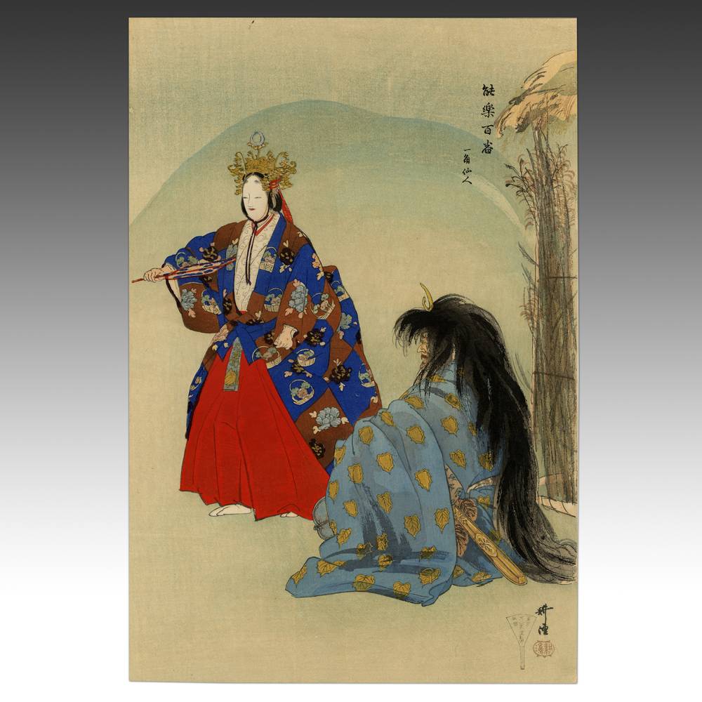Noh Drama Scene: Ikkaku sennin (in rare vertical format)