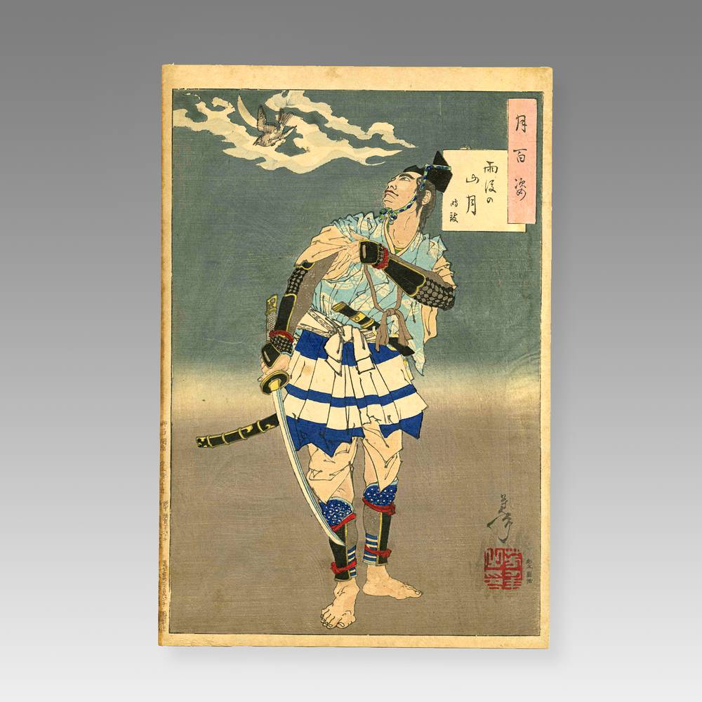 Tsukioka Yoshitoshi (1839-1892) is widely recognized as the last great master of Ukiyo-e and one of the form's greatest innovators. Living the last years of feudal Japan and the first years of modern Japan following the Meiji Restoration, Yoshitoshi was as equally interested in new things as concerned with the loss of traditional Japanese culture. One of his greatest works was this series, One Hundred Aspects of the Moon, depicting scenes from Japanese and Chinese history and legend, with the moon as the unifying element.
