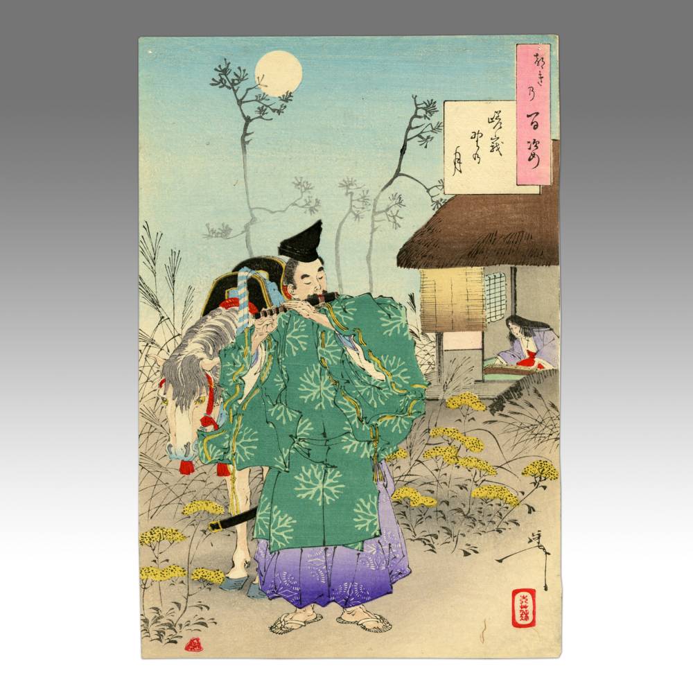 Tsukioka Yoshitoshi (1839-1892) is widely recognized as the last great master of Ukiyo-e and one of the form's greatest innovators. Living the last years of feudal Japan and the first years of modern Japan following the Meiji Restoration, Yoshitoshi was as equally interested in new things as concerned with the loss of traditional Japanese culture. One of his greatest works was this series, One Hundred Aspects of the Moon, depicting scenes from Japanese and Chinese history and legend, with the moon as the unifying element.