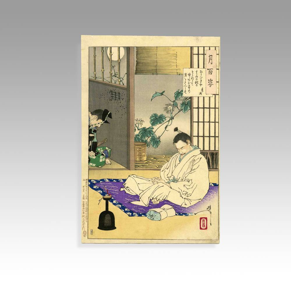Tsukioka Yoshitoshi (1839-1892) is widely recognized as the last great master of Ukiyo-e and one of the form's greatest innovators. Living the last years of feudal Japan and the first years of modern Japan following the Meiji Restoration, Yoshitoshi was as equally interested in new things as concerned with the loss of traditional Japanese culture. One of his greatest works was this series, One Hundred Aspects of the Moon, depicting scenes from Japanese and Chinese history and legend, with the moon as the unifying element.