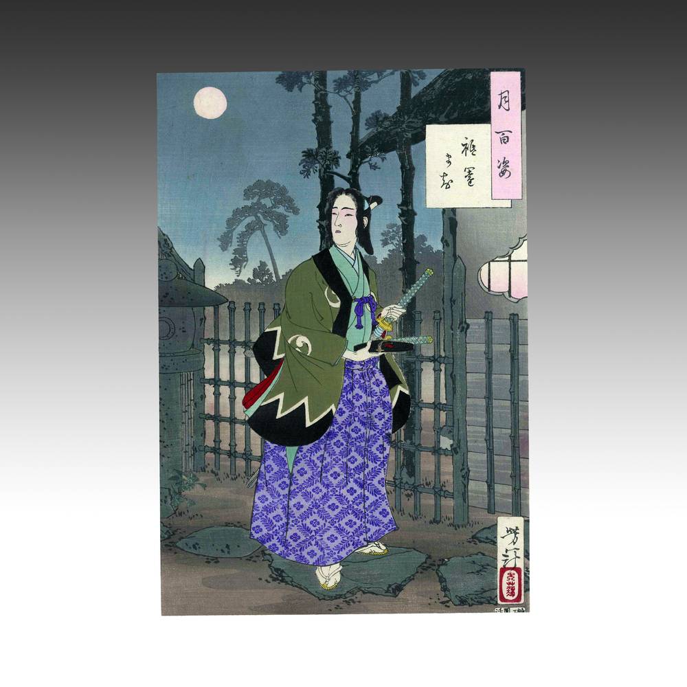 Tsukioka Yoshitoshi (1839-1892) is widely recognized as the last great master of Ukiyo-e and one of the form's greatest innovators. Living the last years of feudal Japan and the first years of modern Japan following the Meiji Restoration, Yoshitoshi was as equally interested in new things as concerned with the loss of traditional Japanese culture. One of his greatest works was this series, One Hundred Aspects of the Moon, depicting scenes from Japanese and Chinese history and legend, with the moon as the unifying element.