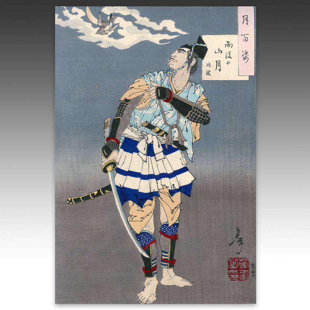 Tsukioka Yoshitoshi (1839-1892) is widely recognized as the last great master of Ukiyo-e and one of the form's greatest innovators. Living the last years of feudal Japan and the first years of modern Japan following the Meiji Restoration, Yoshitoshi was as equally interested in new things as concerned with the loss of traditional Japanese culture. One of his greatest works was this series, One Hundred Aspects of the Moon, depicting scenes from Japanese and Chinese history and legend, with the moon as the unifying element.