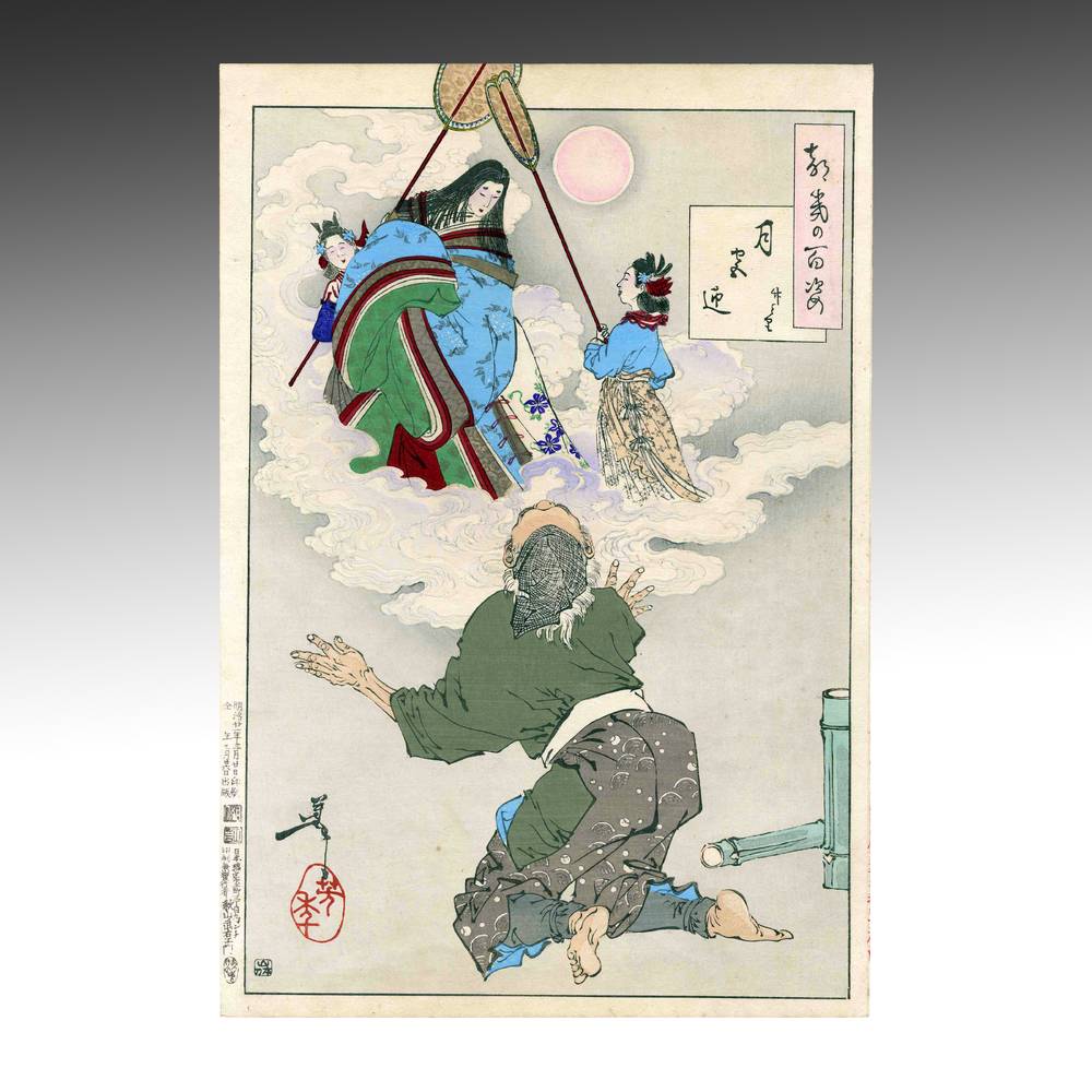 Tsukioka Yoshitoshi (1839-1892) is widely recognized as the last great master of Ukiyo-e and one of the form's greatest innovators. Living the last years of feudal Japan and the first years of modern Japan following the Meiji Restoration, Yoshitoshi was as equally interested in new things as concerned with the loss of traditional Japanese culture. One of his greatest works was this series, One Hundred Aspects of the Moon, depicting scenes from Japanese and Chinese history and legend, with the moon as the unifying element.