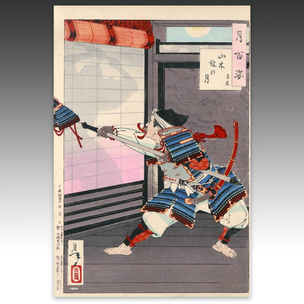 Tsukioka Yoshitoshi (1839-1892) is widely recognized as the last great master of Ukiyo-e and one of the form's greatest innovators. Living the last years of feudal Japan and the first years of modern Japan following the Meiji Restoration, Yoshitoshi was as equally interested in new things as concerned with the loss of traditional Japanese culture. One of his greatest works was this series, One Hundred Aspects of the Moon, depicting scenes from Japanese and Chinese history and legend, with the moon as the unifying element.