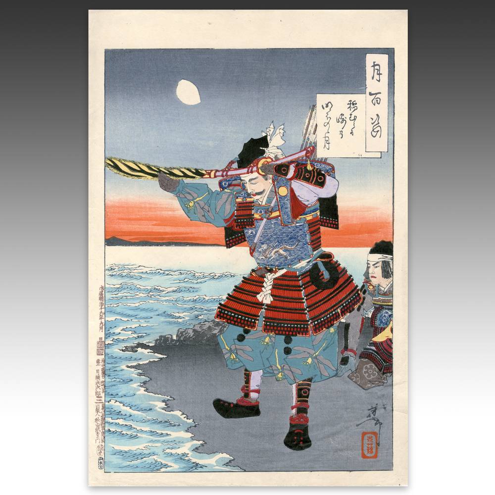 Tsukioka Yoshitoshi (1839-1892) is widely recognized as the last great master of Ukiyo-e and one of the form's greatest innovators. Living the last years of feudal Japan and the first years of modern Japan following the Meiji Restoration, Yoshitoshi was as equally interested in new things as concerned with the loss of traditional Japanese culture. One of his greatest works was this series, One Hundred Aspects of the Moon, depicting scenes from Japanese and Chinese history and legend, with the moon as the unifying element.