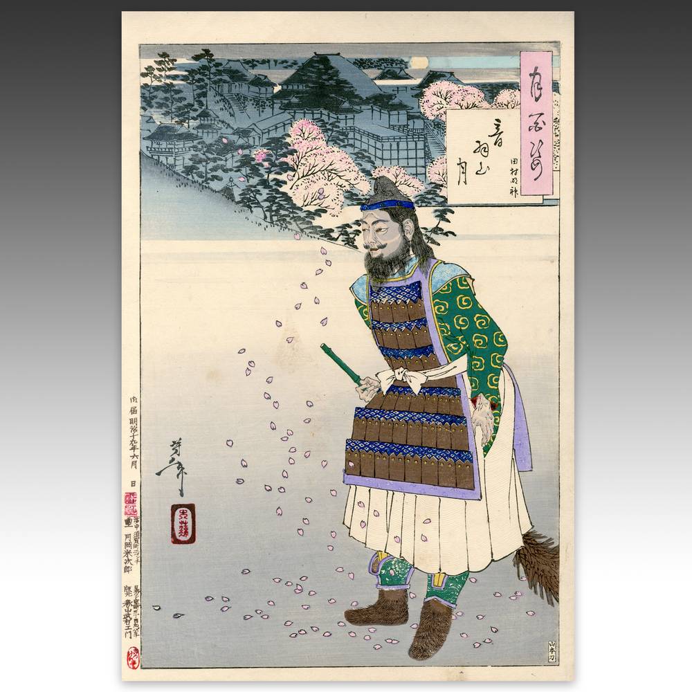 Tsukioka Yoshitoshi (1839-1892) is widely recognized as the last great master of Ukiyo-e and one of the form's greatest innovators. Living the last years of feudal Japan and the first years of modern Japan following the Meiji Restoration, Yoshitoshi was as equally interested in new things as concerned with the loss of traditional Japanese culture. One of his greatest works was this series, One Hundred Aspects of the Moon, depicting scenes from Japanese and Chinese history and legend, with the moon as the unifying element.