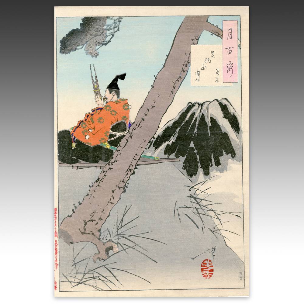 Tsukioka Yoshitoshi (1839-1892) is widely recognized as the last great master of Ukiyo-e and one of the form's greatest innovators. Living the last years of feudal Japan and the first years of modern Japan following the Meiji Restoration, Yoshitoshi was as equally interested in new things as concerned with the loss of traditional Japanese culture. One of his greatest works was this series, One Hundred Aspects of the Moon, depicting scenes from Japanese and Chinese history and legend, with the moon as the unifying element.