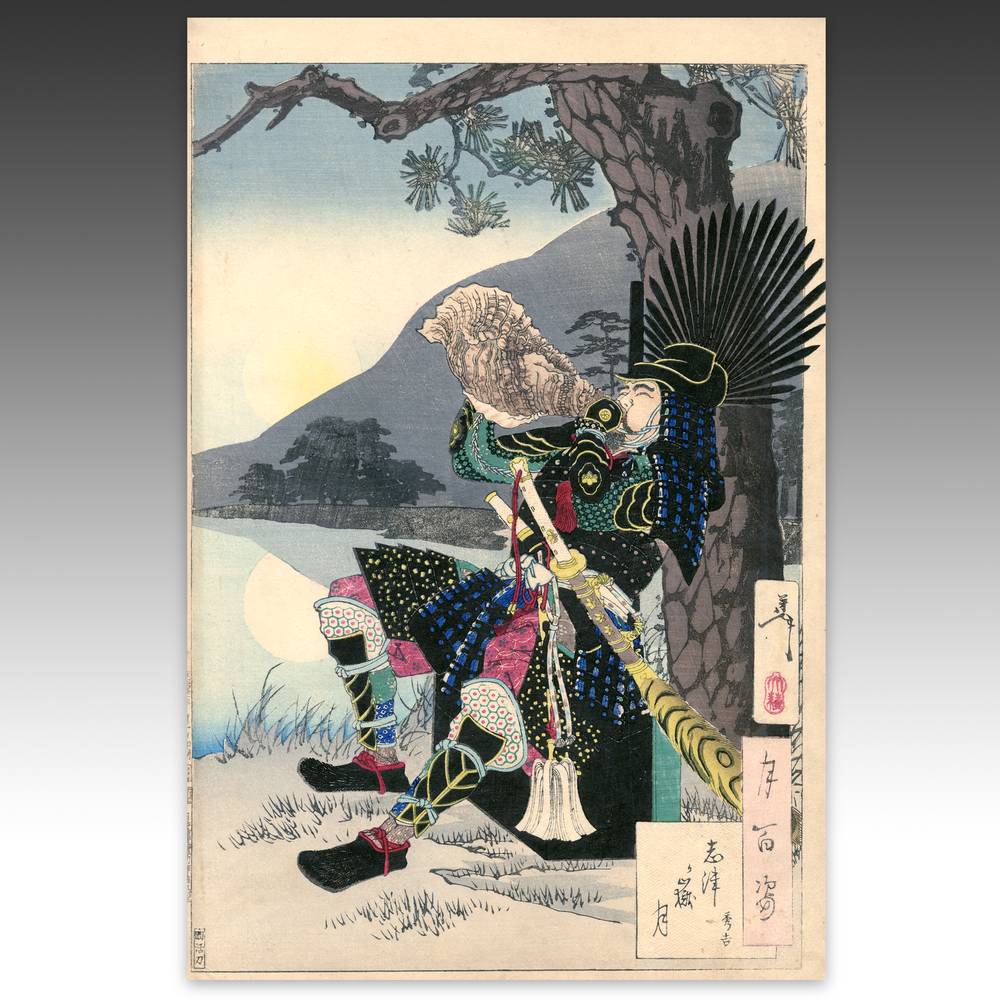 Tsukioka Yoshitoshi (1839-1892) is widely recognized as the last great master of Ukiyo-e and one of the form's greatest innovators. Living the last years of feudal Japan and the first years of modern Japan following the Meiji Restoration, Yoshitoshi was as equally interested in new things as concerned with the loss of traditional Japanese culture. One of his greatest works was this series, One Hundred Aspects of the Moon, depicting scenes from Japanese and Chinese history and legend, with the moon as the unifying element.