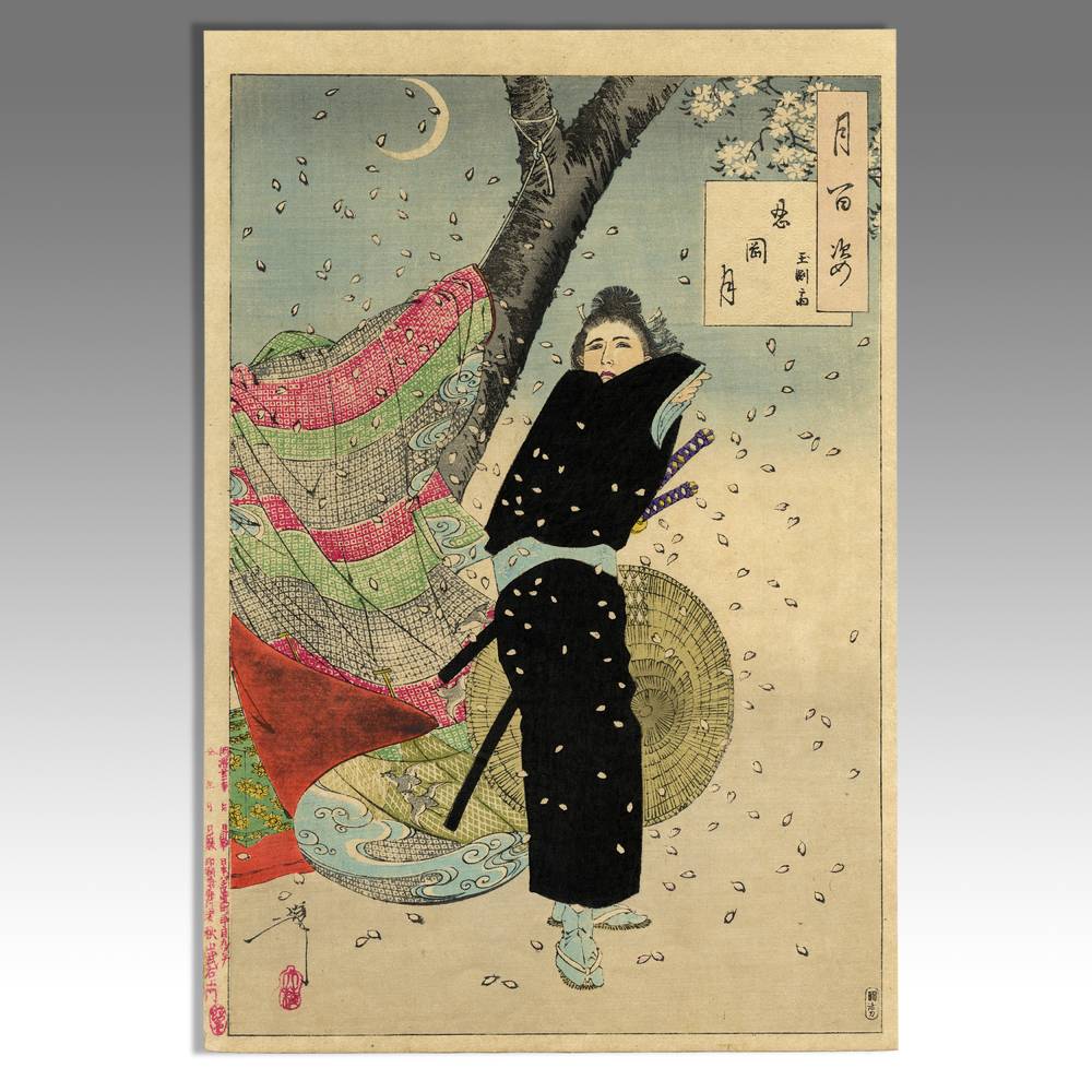 Tsukioka Yoshitoshi (1839-1892) is widely recognized as the last great master of Ukiyo-e and one of the form's greatest innovators. Living the last years of feudal Japan and the first years of modern Japan following the Meiji Restoration, Yoshitoshi was as equally interested in new things as concerned with the loss of traditional Japanese culture. One of his greatest works was this series, One Hundred Aspects of the Moon, depicting scenes from Japanese and Chinese history and legend, with the moon as the unifying element.