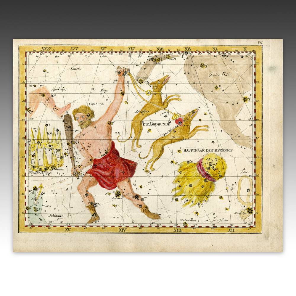 VORSTELLUNG DER GESTIRNE (PRESENTATION OF THE STARS), PLATE VII, HERCULES & THE HUNTING DOGS